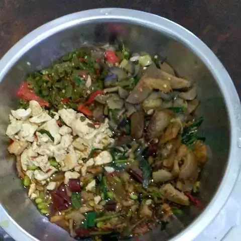 1、牛蛙宰杀去头去皮去内脏洗净,斩成块,用盐、胡椒粉、干豆粉、料酒上浆码味。泡红辣椒去蒂去籽切成节,大葱洗净切成节,泡姜切成姜米!