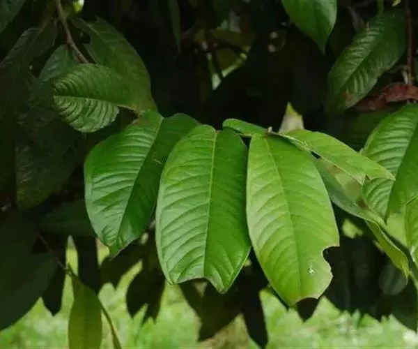 乔木,高20米;嫩枝稍压扁,干后绿色。叶片狭长椭圆形至椭圆形,长14-30厘米,宽6-13厘米,先端渐尖,基部圆形,有时微心形,上面干后绿色,无光泽,下面浅绿色,无明显腺点,侧脉15-22对,平缓斜行,离边缘4-5毫米处互相结合成边脉,靠近边缘1.5毫米处另有1条不明显的边脉,侧脉间相隔1-1.3厘米,有明显网脉;叶柄长5-10毫米。