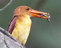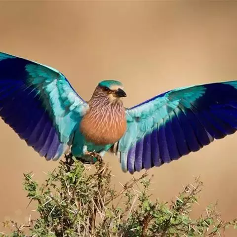 棕胸佛法僧是佛法僧科佛法僧属中型鸟类,体长32~35厘米。黑色的嘴细而下弯。头顶暗蓝色,…