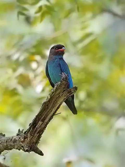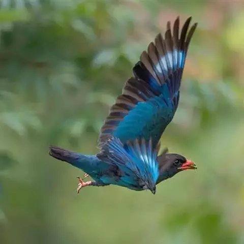 三宝鸟,是佛法僧目佛法僧科三宝鸟属中小型攀禽。成鸟通体为富有光泽的墨蓝绿色,…