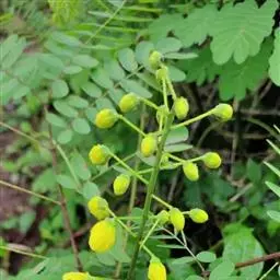 翅荚决明 Roxb.)是豆科决明属灌木植物,高3米。羽状复叶,在叶柄和叶轴上有窄翅;小叶倒卵状长圆形,…