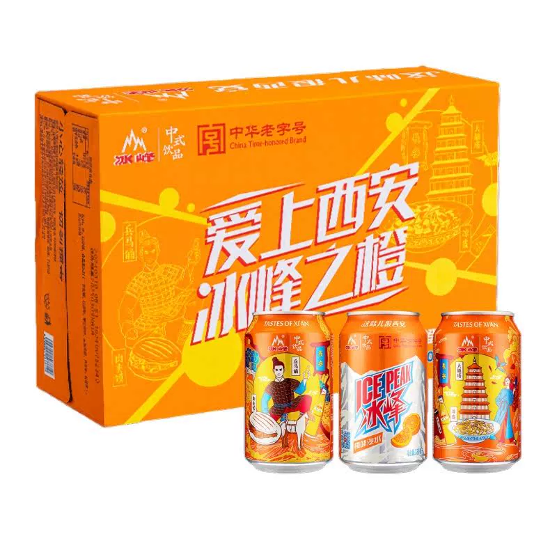 2012年4月24日,罐装冰峰通过了西安市质量技术监督局的产品检验。从2012年4月30日起,冰峰开始启用易拉罐装、易拉罐新产品定名为“冰峰易拉罐——橙味碳酸饮料”,它的外观设计延续了原玻璃瓶产品的设计风格,精美、亮丽并具有独特的包装个性。每听容量为330ml,超市价格约为2.5元/听,商店价格约为3元/听,为了细分产品冲击市场,两万箱之后罐装冰峰的口号也由原来“从小就喝它”变为“今天就喝它”。厂家首批推出的2万箱近50万罐易拉罐装冰峰,30日当天已全部被经销商批发运向市场,此次上市的易拉罐装冰峰大约在2万箱,近50万罐,主要是在西安、陕北以及一些区县销售,西安、陕北等上市量各为10多万罐。“易拉罐冰峰主要在一部分小超市、便利店、酒店等销售。西安市民在东大街、菊花园、书院门、回民街以及渭水园、动物园等主要街道或地区,都能方便买到。”