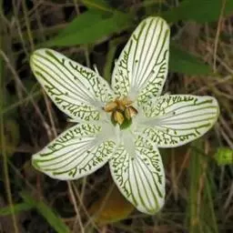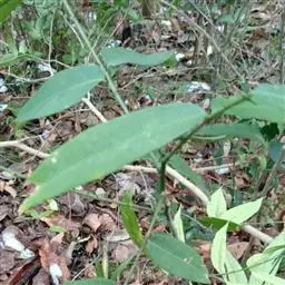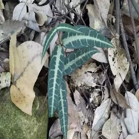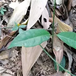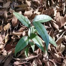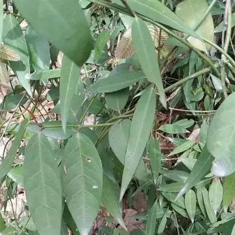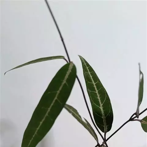 常绿钩吻藤 攀援性灌木,常绿。叶对生,披针形,长6厘米,表面有光泽,先端尖,全缘或疏生波纹,背面稍淡;花单生或成小型聚伞花序,出自叶腋,花漏斗形,五裂,裂片圆形,先端稍凹,鲜黄色有香气,长4厘米,雄蕊5,萼绿色有钝裂,着生于有鳞片的短花梗上,花期3月下旬至5月初。果实为长2厘米的蒴果,2果瓣;种子有膜翅。