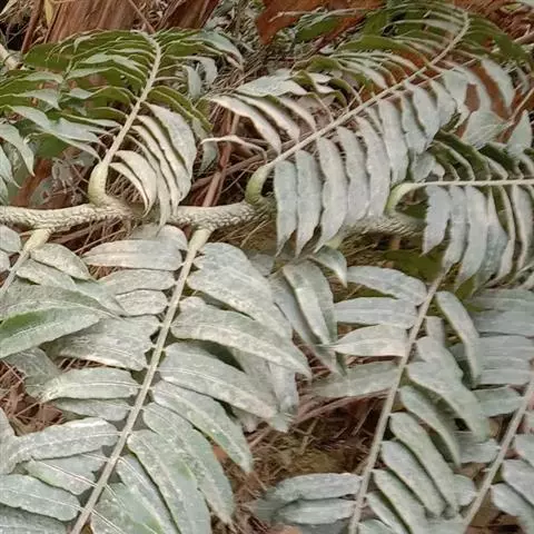 苏铁蕨是乌毛蕨科苏铁蕨属植物。根状茎粗壮,木质,直立圆柱状,直径达15厘米或更粗,…