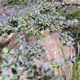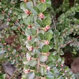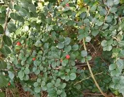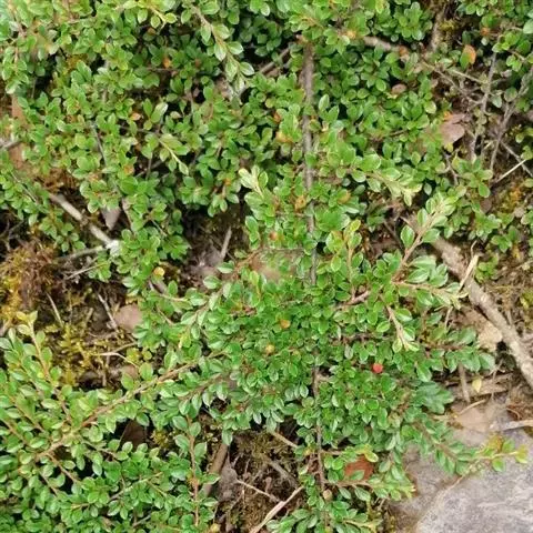 匍匐栒子 匍匐栒子是落叶匍匐灌木,茎不规则分枝,平铺地上;小枝细瘦,圆柱形,幼嫩时具糙伏毛,逐渐脱落,红褐色至暗灰色。叶片宽卵形或倒卵形,稀椭圆形,长5-15毫米,宽4-10毫米,先端圆钝或稍急尖,基部楔形,边缘全缘而呈波状,上面无毛,下面具稀疏短柔毛或无毛;叶柄长1-2毫米,无毛;托叶钻形,成长时脱落。