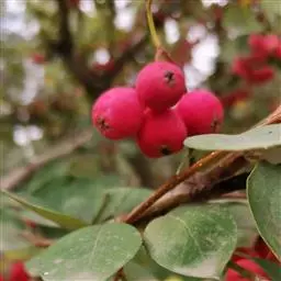 匍匐栒子因其植株生长呈匍匐状,枝叶茂盛、果实鲜艳,加以修剪造型也可作为良好的盆景材料。