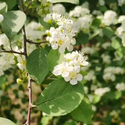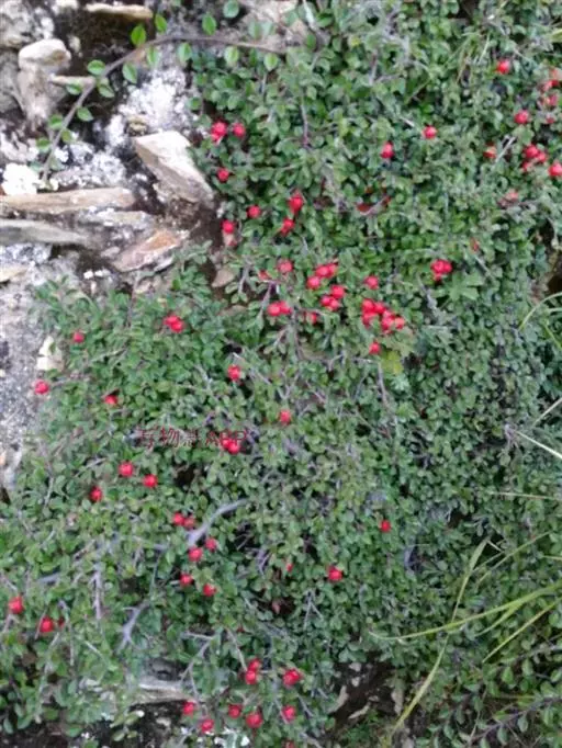匍匐栒子与平枝栒子(C.horizontalisDcne.)的主要异点,在于后者茎水平展开,呈规则地二列分枝,叶片近圆形或宽椭圆形,稀倒卵形,边缘不呈波状,果实直径4-6毫米,有3小核。