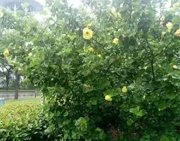 海滨木槿是锦葵科木槿属植物,落叶小乔木,株高3-5米,胸径20厘米,扁球形树冠,枝叶繁盛。…