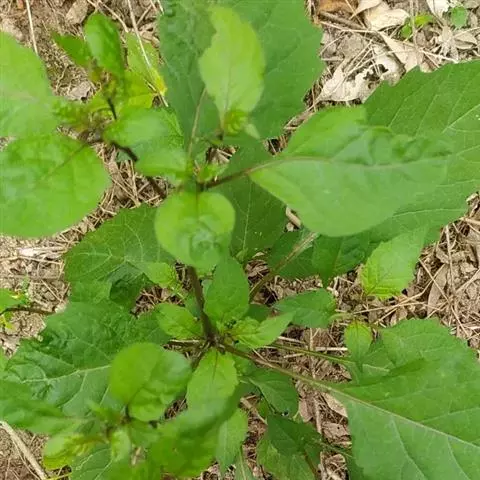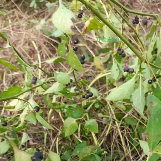 龙葵(学名:Solanum nigrum L. ):一年生草本植物,全草高30-120厘米;茎直立,多分枝;卵形或心型叶子互生,近全缘;夏季开白色小花,4-10朵成聚伞花序;球形浆果,成熟后为黑紫色。浆果和叶子均可食用,但叶子含有大量生物碱,须经煮熟后方可解毒。全株入药,可散瘀消肿,清热解毒。