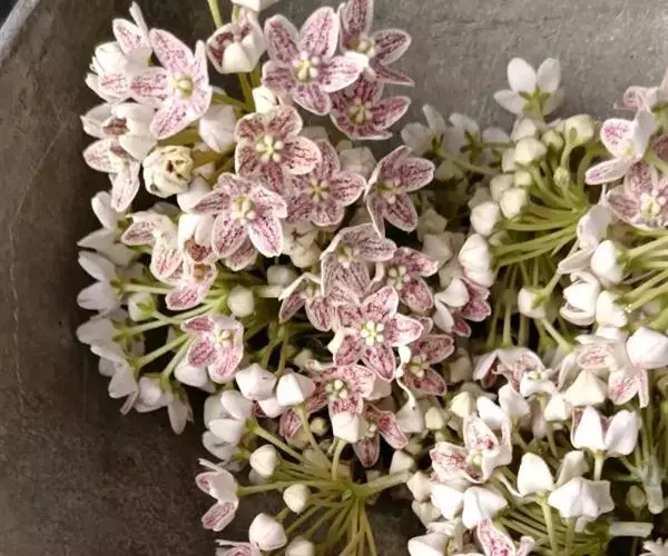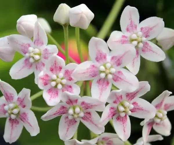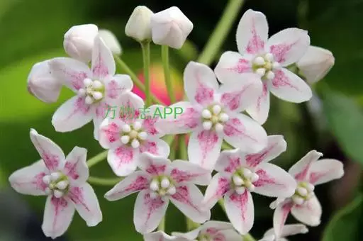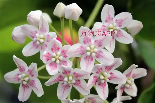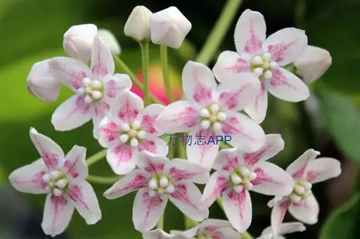 攀援灌木,全株具乳汁,除花冠和合蕊柱外,全株均被小茸毛,老茎被毛渐脱落。叶纸质,卵圆形,长1.3-3厘米,宽0.9-2.5厘米,基部心形,叶面被短柔毛,叶背被淡黄色的微茸毛,老渐脱落;侧脉每边约4条,在叶背凸起;叶柄长0.5-2.5厘米,顶端具3-4个丛生小腺体。伞形状聚伞花序腋生,长达5厘米,着花达15朵;花萼裂片卵圆形,花萼内面基部具5个小腺体;花冠白色,辐状,裂片卵圆形,长5毫米,宽3.5毫米,顶端钝而微凹,具脉纹,边缘被缘毛;副花冠裂片肉质,背面圆球状凸起,顶端内角延伸成尖角,与花药顶端的膜片近等高;花粉块长圆状,直立;子房被疏柔毛,花柱短圆柱状,柱头圆锥状,基部五角形,顶端短2裂。蓇葖披针形,长3.5-5厘米,直径5-7毫米,外果皮被微毛,老渐脱落,平滑无皱褶;种子卵圆形,长7毫米,宽4毫米,顶端具白色绢质种毛;种毛长2厘米。花期4-8月,果期10月。