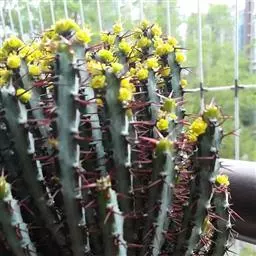 小乔木,高2~6米,直径10~25厘米,老时呈灰色或淡灰色,幼时绿色,上部平展或分枝;小枝肉质光棍…