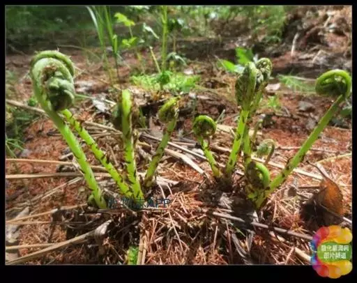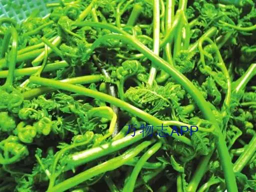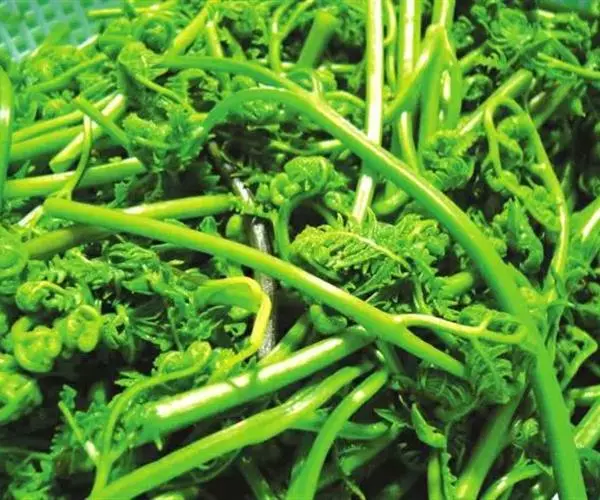 当蕨菜长出地面20厘米左右,新出顶叶尚未展开,像“拳头状”时应适时采收。过早采收产量低,过迟采收和高温干旱都会使茎杆纤维素老化,影响鲜蕨的品质。