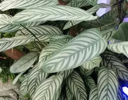 猫眼竹芋 :竹芋科,肖竹芋属多年生常绿草本观叶植物。株高可达100厘米,叶片长椭圆形,头状花序,…