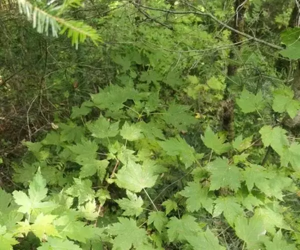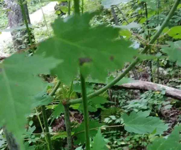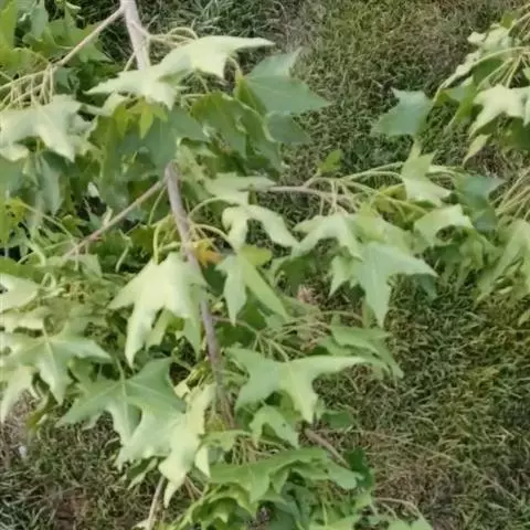落叶乔木,通常高8-10米,稀达15米。树皮粗糙,灰褐色或深褐色,常裂成薄片脱落。小枝细瘦,当年生枝紫色或紫褐色,常有黄色短柔毛,多年生枝褐色或深褐色,无毛或近于无毛。冬芽短圆锥形;外部的2枚鳞片深紫色,有黄色短柔毛,内部的2枚苞片有褐色短柔毛。叶膜质或纸质,基部截形或近于心脏形,外貌近于圆形,长10-12厘米,宽7-9厘米,常5裂,稀7裂;裂片阔卵形稀三角卵形,先端锐尖,边缘有粗锯齿,裂片间的凹缺锐尖,深达叶片全长的2/5;上面深绿色,近于无毛,下面淡绿色或黄绿色,密被淡黄鱼丝越立在叶脉上更密;主脉5条,在上面显著,在下面凸起,侧脉11-13对,蓬蕊薇,显著,在下面显著,小叶脉在上面不显著,在下面显著,叶柄长5-8厘米,微有短柔毛或无毛。