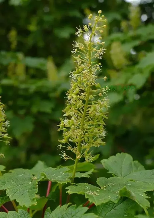 花黄绿色,单性,雌雄异株,常成有短柔毛的直立的顶生总状圆锥花序,长8-10厘米,总花梗长约3厘米,生于着叶的小枝上;萼片5,淡黄绿色,披针形,长2毫米,微有短柔毛;花瓣5,白色微现淡黄,倒披针形,长约3毫米;雄蕊8,无毛,着生于花盘的中部,长约5毫米,伸出花外,花药黄色;花盘无毛,微裂;子房密被绒毛;花梗长5-8毫米,细瘦,被短柔毛。翅果嫩时淡红色,成熟时黄褐色,常成直立的穗状果序;小坚果卵圆形,微有毛,直径6毫米;翅与小坚果共长1.5-2厘米,阔6毫米,张开成直角。花期5月。果期9月。