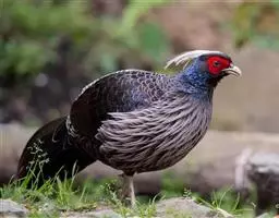 又名鸬雉 、黑鸡,中型鸟类,全长约48cm。雄鸟头顶和后颈及颈侧均紫黑。头上具有稍形直立的同色羽冠。背部蓝黑,下体大都黑褐,胸羽为披针状,除羽基外,呈白色而沾灰。脸部赤红。嘴黄褐,分布范围:喜马拉雅山脉、印度北部、缅甸北部及西部。在中国相当罕见,仅分布于海拔2100~3200米的亚热带森林。