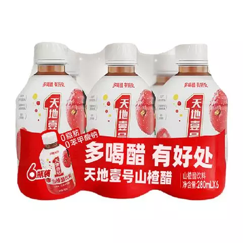 天地壹号推出的山楂醋饮料,口感酸甜,有助于开胃消食。
