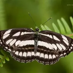 大二尾蛱蝶两翅正面黑色,中域有一浅绿色大型宽带纹,两翅反面浅绿色,中域有一缀黑边的褐色弧纹,…