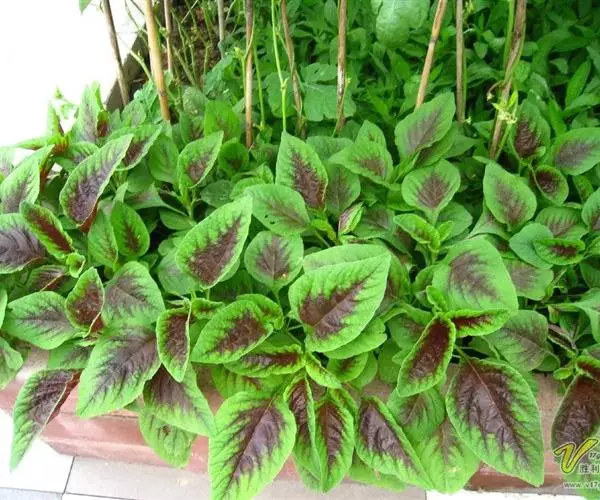 叶片边缘绿色,叶脉附近紫红色,耐热性较差, 质地软。有上海的尖叶红米苋及广州的尖叶花红等。