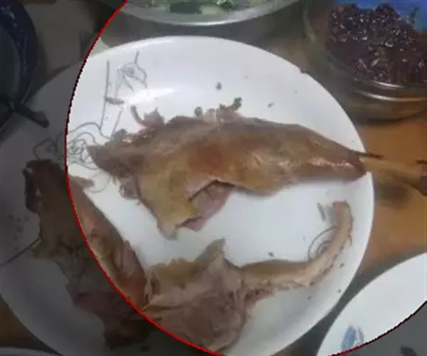 方法:(1)将鸭脯向上,鸭头朝外摆好。用左手攥住鸭掌,向上略抬起,使鸭腿肉绷紧,右手持刀将鸭掌从关节处剁下来。然后,将鸭体翻过来,使鸭头朝里,掰开鸭嘴,拉出鸭舌。