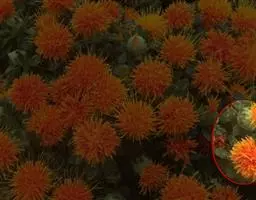 舌状花2-3,黄色,舌片线状长圆形,长达17毫米,宽2-3毫米,先端钝,透明,管部长6-7毫米;管状花常3个,远出于总苞之上,长10-12毫米,管部与檐部等长,花柱细长,冠毛紫褐色,长约4 毫米,短于管部。