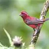 酒红朱雀小型鸟类,体长13~15厘米。雄鸟通体深红色,头部深朱红或棕红色,下背和腰玫瑰红色,…