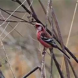 喜马拉雅白眉朱雀:小型鸟类,体长15-17厘米,体重24-35克。额基、眼先深红色,…