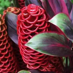 珊瑚姜是姜科、姜属植物。株高近1米。叶片长圆状披针形或披针形,长20-30厘米,宽4-6厘米,…