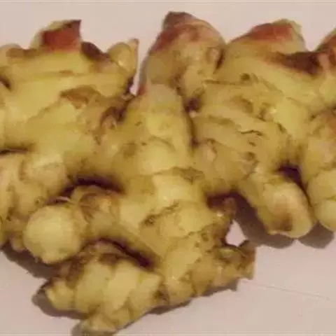4.煨姜:将原只鲜生姜洗净,用草纸包裹,放在清水中浸湿,直接放在火中煨,待草纸焦黑,姜熟为度;或直接放火中烤熟。性味辛温,具有和中止呕的功用。适用于脾胃不和、恶心呕吐等症。一般用量为二、三片,煎服。