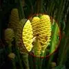 花茎直立,被以覆瓦状疏离的鳞片,穗状花序卵形至椭圆形,长约5厘米,宽约2.5厘米,苞片卵形,淡绿色;花稠密,长约2.5厘米,先端锐尖,萼短筒状,花冠3裂,裂片披针形,黄色,唇瓣较短,长圆状倒卵形,呈淡紫色,有黄白色斑点,下部两面三刀侧各有小裂片;雄蕊1枚,挺出,子房下位,花柱丝状,淡紫色,柱头放射状。蒴果长圆形胀约2.5厘米,花期6-8月。