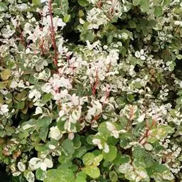 常绿小灌木。株高约50~120厘米,枝条暗红色 。叶互生,圆形或阔卵形,全缘。白色或有白色斑纹。嫩…