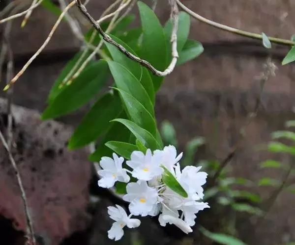美花石斛是兰科石斛属多年生草本。茎柔弱,斜立或下垂,呈细圆柱形,有时分枝;叶互生于茎上,…