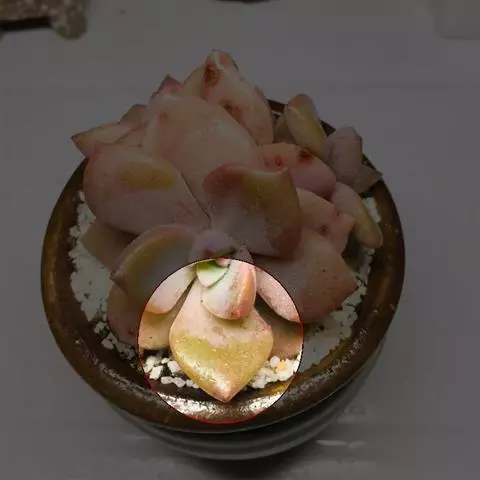 景天科风车草属的多肉植物,原产于墨西哥。株形和风车草属胧月极为相似。花瓣被蜡,叶排成延长的莲座状被…