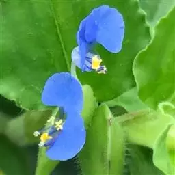 大苞鸭拓草 多年生粗壮大草本。茎常直立,有时基部节上生根,高达1米,不分枝或有时上部分枝,无毛或疏生短毛(幼时一侧被一列棕色柔毛)。叶无柄;叶片披针形至卵状披针形,长7-20厘米,宽2-7厘米,顶端渐尖,两面无毛或有时上面生粒状毛而下面相当密地被细长硬毛;叶鞘长1.8-3厘米,通常在口沿及一侧密生棕色长刚毛,但有时几乎无毛,仅口沿有几根毛,也有的全面被细长硬毛。总苞片漏斗状,长约2厘米,宽1.5-2厘米,无毛,无柄,常数个(4-10)在茎顶端集成状头,下缘合生,上缘急尖或短急尖;蝎尾状聚伞花序有花数朵,几不伸出,具长约1.2厘米的花序梗。花梗短,长约7毫米,折曲;萼片膜质,长3-6毫米,披针形;花瓣蓝色,匙形或倒卵状圆形,长5-8毫米,宽4毫米,内面2枚具爪。蒴果卵球状三棱形,3室,3爿裂,每室有1颗种子,长4毫米。种子椭圆状,黑褐色,腹面稍压扁,长约3.5毫米,具细网纹。花期8-10月,果期10月至次年4月。