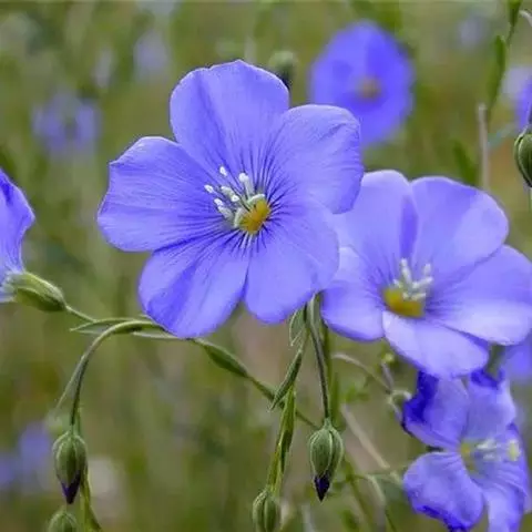 花亚麻,麻的一种,株高40一50cm,茎直立,基部分枝。叶互生、灰绿色,线形或线状披针形。原产北非。