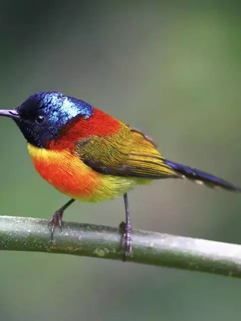黄腰太阳鸟共有16个亚种,小型鸟类,体长10-15厘米。嘴细长而向下弯曲,雄鸟额和头顶前部金属绿色,…