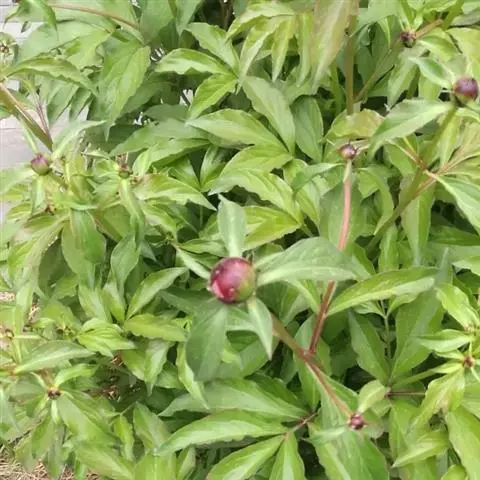 葛巾紫牡丹是落叶灌木。株型中高,半开展。分枝短而粗。中型圆叶,质地软而厚,较密;小叶卵圆形,长7-8厘米,宽5.5-7厘米,缺刻多,端锐尖,深绿色有较深紫色晕。无毛,背面淡绿色,有时具白粉,沿叶脉疏生短柔毛或近无毛,小叶柄长1.2-3厘米;侧生小叶狭卵形或长圆状卵形,长4.5-6.5厘米,宽2.5-4厘米,近无柄;叶柄长5-11厘米,和叶轴均无毛。