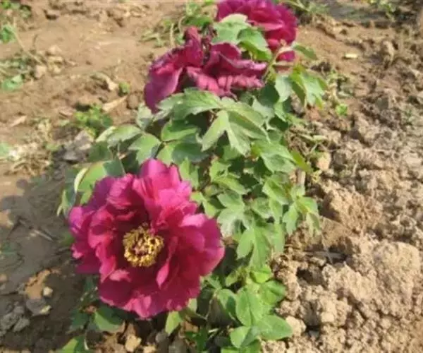 中耕:生长季节应及时中耕, 拔除杂草, 注意病、虫发生。秋冬,对两年生以上牡丹的天块实施翻耕。