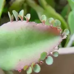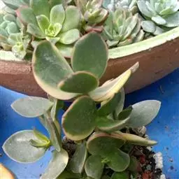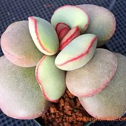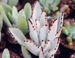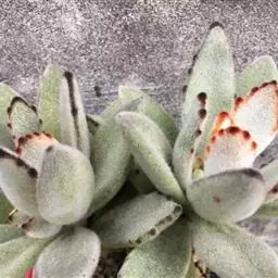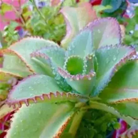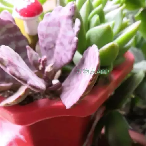 江户紫,景天科伽蓝菜属草本植物,是多年生草本花卉。花白色,但栽培中很少能见到花,常作观叶植物栽培。原产自非洲的索马里、埃塞俄比亚。