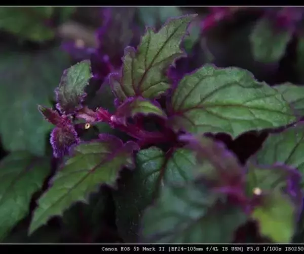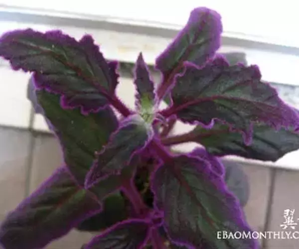 常绿多年生草本植物,多分枝,蔓生状。茎多汁,幼时直立,长大后下垂或匍匐蔓生。茎叶密被紫红色绒毛。叶对生,卵形或广椭圆形,叶长8~15厘米,宽4-5厘米;叶缘有较粗的复锯齿,叶端急尖,叶脉掌状明显。幼叶呈紫红色,长大后呈深绿色,整个植株密被紫红色的茸毛。在观叶植物中很有特色。