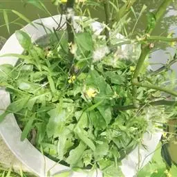 花为头状花序,腋生,呈黄色或橙黄色,类似蒲公英花,有时会散发出令人不悦的异味,所以常将花蕾摘掉;花期4~5月。
