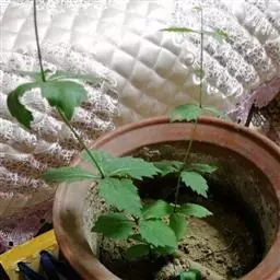 播后立即向床面覆盖1厘米左右厚度的细碎树叶,再向树叶上喷水,使水透过树叶,渗透到床面表土上,浸湿床面表土不少于8厘米。也可覆盖前喷水,覆叶后在喷水。为防树叶被风刮散,需用适量树枝、木棍适当压住树叶。种芽能自然突破树叶而长出,一般不需撤覆物。若覆盖过厚,需适当适时撤出一些树叶。留在床表的树叶能保湿、保温,也能减少杂草发生量。6-9月,床面若有杂草出现,应随时拔掉。当苗高5厘米左右时,若过密应按5-10厘米株距定苗,间掉多余苗。留苗过多,苗茎较细且根用量少而细。作为中草药产品经在床上2-3年生长,于第3-4年即可连根采挖。而作为山野菜生产,则一直留床生长。