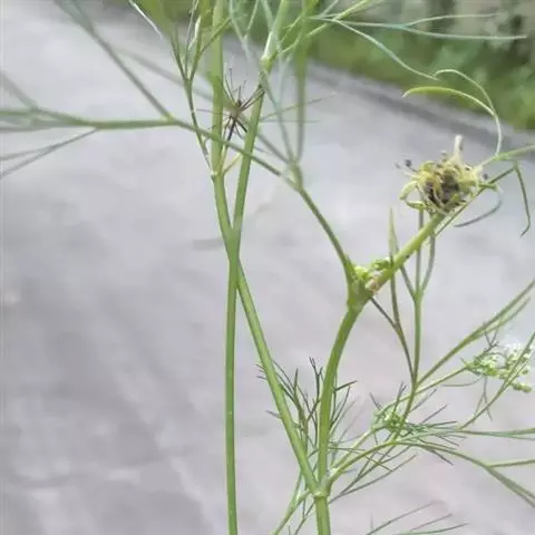果实长卵形至线状长圆形,长5-10毫米,宽1-1.5毫米,光滑或疏生小瘤点,顶端渐狭成喙状,合生面明显收缩,果柄顶端常有一环白色小刚毛,分生果横剖面近圆形,油管不明显,胚乳有深槽。花果期4-5月。