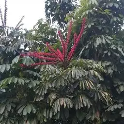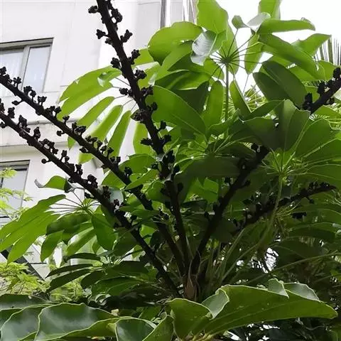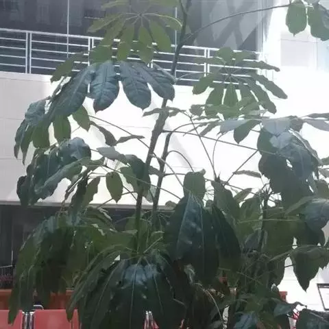 昆士兰伞木,吕松鹅掌柴 ,称昆石兰遮树,澳洲鸭脚木、方式叶鹅掌柴、伞树、大叶伞。叶片阔大,柔软下…