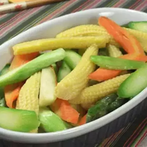 五彩时蔬是一道美食,制作材料有大白菜、猪肚、草虾、鱿鱼、海参、火腿、香菇等。