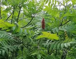 火炬树是漆树科盐麸木属落叶灌木或小乔木;株高,树形不整齐;小枝粗壮,红褐色,密生绒毛;叶轴无翅,…