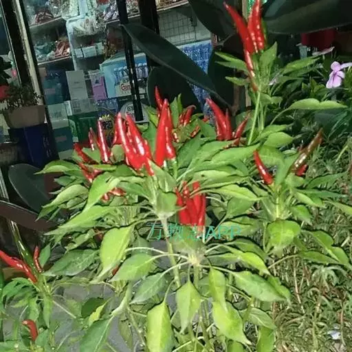 (Var.grossum Bailey)类型朝天椒品种:该类型的朝 灯笼椒 天椒品种很少,有“小铜锤”等品种。小铜锤朝天椒株型高大,生长势较强,株高100~110厘米,开展度40~50厘米。主茎高50~60厘米,基部粗0.7厘米左右,长出14~16片的真叶开始分枝。属无限分枝类型,二杈分枝。密植时无侧枝发生,稀植时可发生3~4条有效侧枝。叶片肥大,主茎上的大叶片,长达15厘米,宽达7厘米,叶柄长达9厘米。叶色深绿,较抗病毒病。连续结果性强,椒果朝天单生。果实为方灯笼型,果面光滑,嫩熟果为青色,老熟果为红色。果长3.5厘米左右,横径3.5厘米左右,果柄长5~6厘米。椒籽多,香味浓,辣度高,品质佳。多作为干椒栽培,也可作为观赏椒栽培。