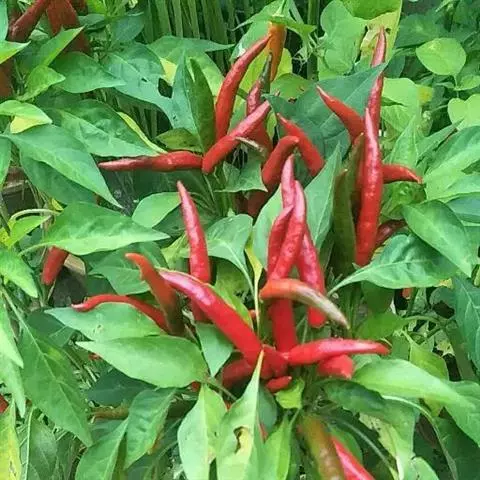 朝天椒,辣椒变种,属茄科辣椒属多年生半木质性植物,常作一年生栽培;其株高30厘米~60厘米,分枝多、茎直立,单叶互生;花白色,开花期5月初-7月底,果实簇生于枝端,风味同青椒。全草入药,根茎性温、味甘,能祛风散寒,舒筋活络并有杀虫、止痒功效。