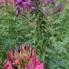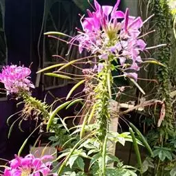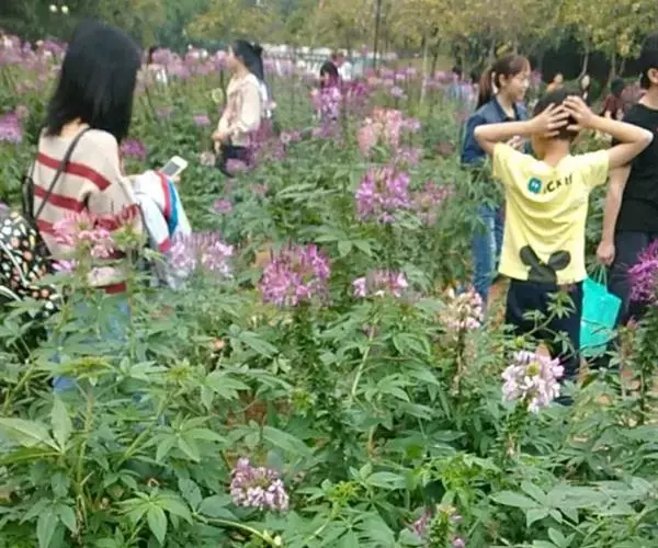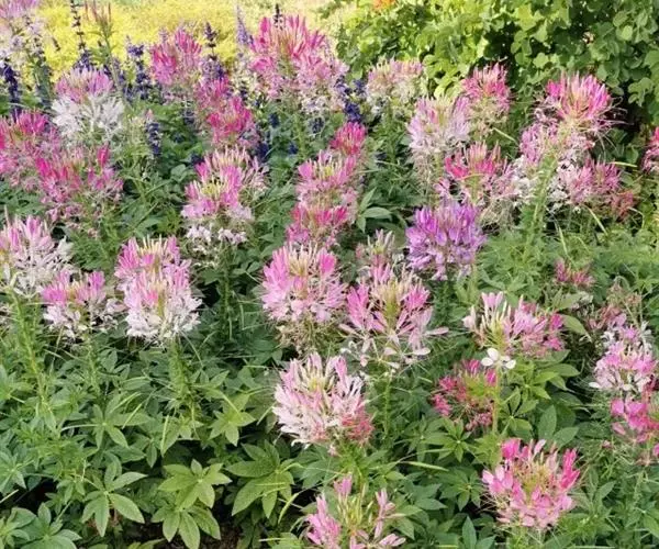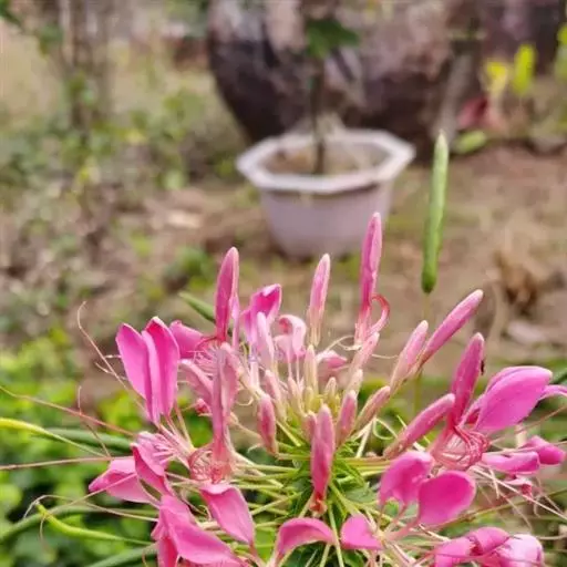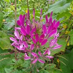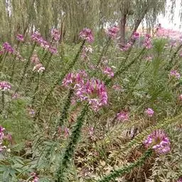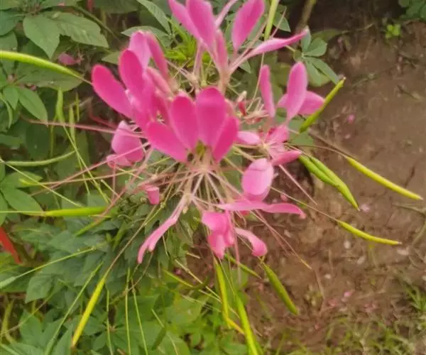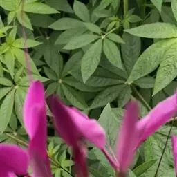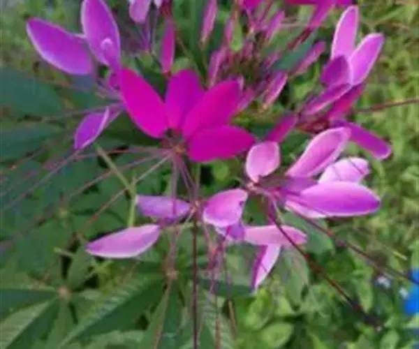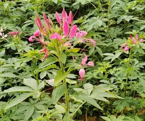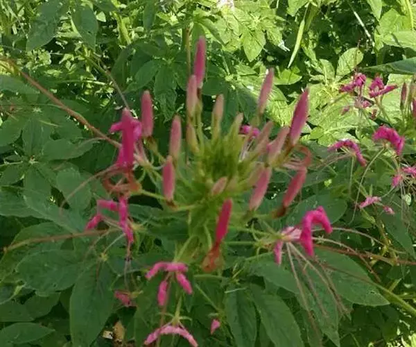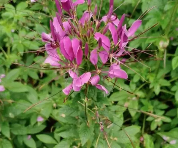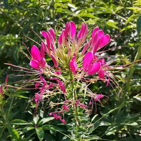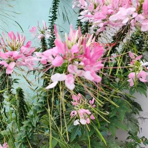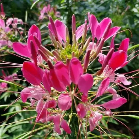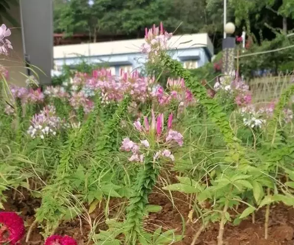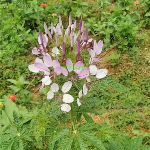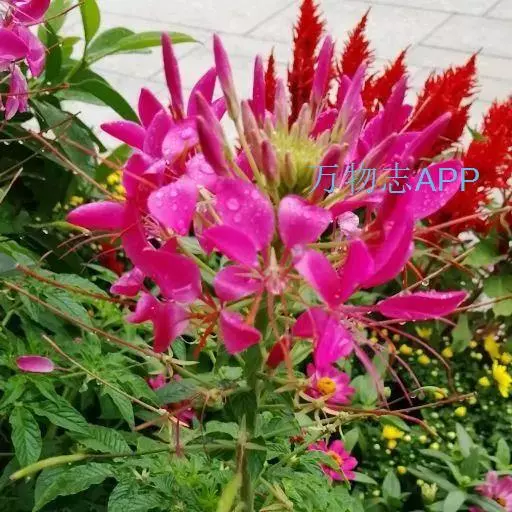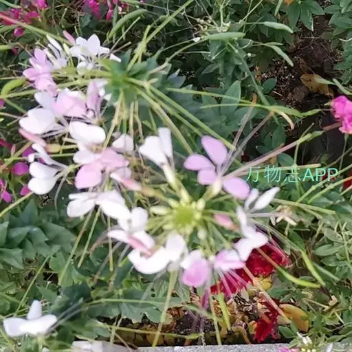 醉蝶花(学名:Cleome spinosa Jacq.):一年生草本植物。花茎直立,株高40厘米-60厘米,有的品种可达1米, 其茎上长有粘汁细毛,会散发一股强烈的特殊气味;叶片为掌状复叶,小叶5枚-7枚,为矩圆状披针形;总状花序顶生,花由底部向上次第开放,花瓣披针形向外反卷,花苞红色,花瓣呈玫瑰红色或白色,雄蕊特长;蒴果圆柱形,种子浅褐色。花期在6月-9月,其花茎长而壮实,花朵盛开时,总状花序形成一个丰满的花球,朵朵小花犹如翩翩起舞的蝴蝶,非常美观。中国无野生,各大城市常见栽培。原产热带美洲,全球热带至温带栽培以供观赏,也是一种优良的蜜源植物。