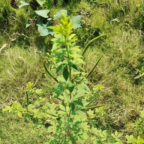 果圆柱形,长5.5-6.5厘米,中部直径约4毫米,两端梢钝,表面近平坦或徽呈念珠状,有细而密且不甚清晰的脉纹。种子直径约2毫米,表面近平滑或有小疣状突起,不具假种皮。花期夏末秋初,果期夏末秋初。